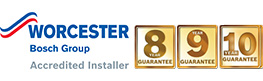 We are accredited by Worcester Bosch, because of this any Worcester Bosch boiler, cylinder, controls, and products we install will come with a 8-10 year guarantee, depending on the boiler model and controls installed.